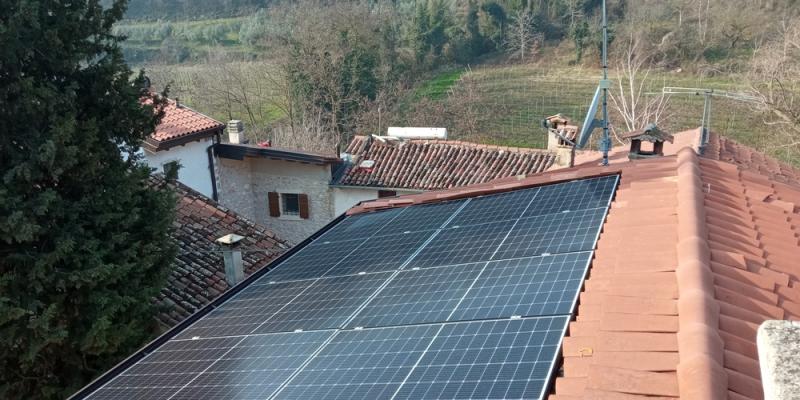 impianto su 2 falde a sud e con ottimizzatori, accumulo 10kwh. Impianto di enostra con cui ecorisoluzioni è convenzionata.