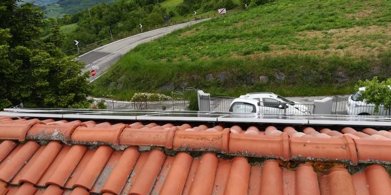 impianto integrato su tetto in coppi, con predisposizione accumulo off-grid, 2,7kwp, inverter GoodWe GW3048-EM, impianto di enostra con cui ...